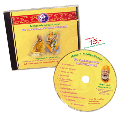 Bestellen Sie noch heute ihr persönliches Exemplar von "Mantra Meditationen! Für Seelenharmonie und Weltfrieden" zum Preis von 15,- € zuzüglich Versandkosten. Rufen Sie an unter 0421–23 93 99 Nepal Lodh oder bestellen Sie unter Angabe Ihrer Adresse unter nepal.lodh@t-online.de